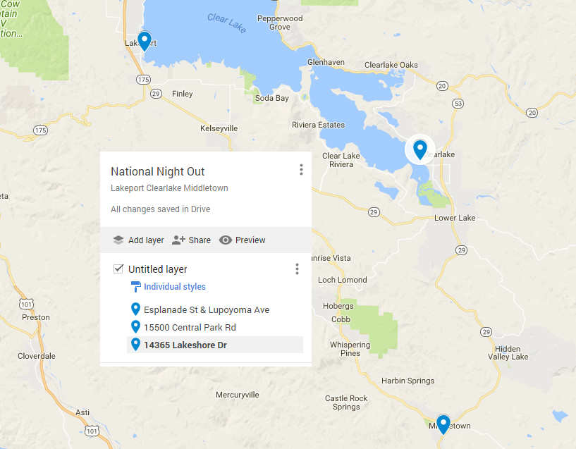 LAKE COUNTY, Calif. – Coordinated by local law enforcement to increase and improve police and community partnerships, National Night Out events will take place from 6 to 8 p.m. Tuesday, Aug. 1, in Clearlake, Lakeport and Middletown.