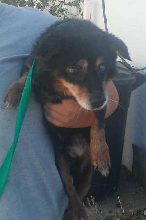 “Peetie” is a senior male Chihuahua and Pomeranian mix.