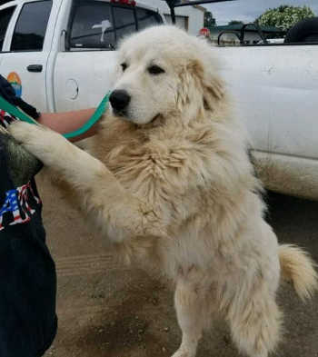 “Valcor” is a Great Pyrenees with a long white coat.