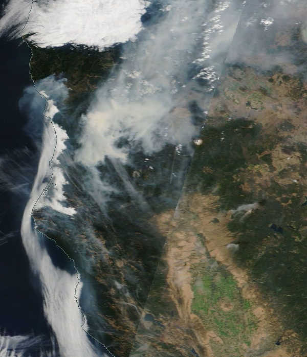 This week, NASA satellite images appeared to indicate that smoke coming into Northern California may also be originating from the many fires burning in Idaho and Montana.