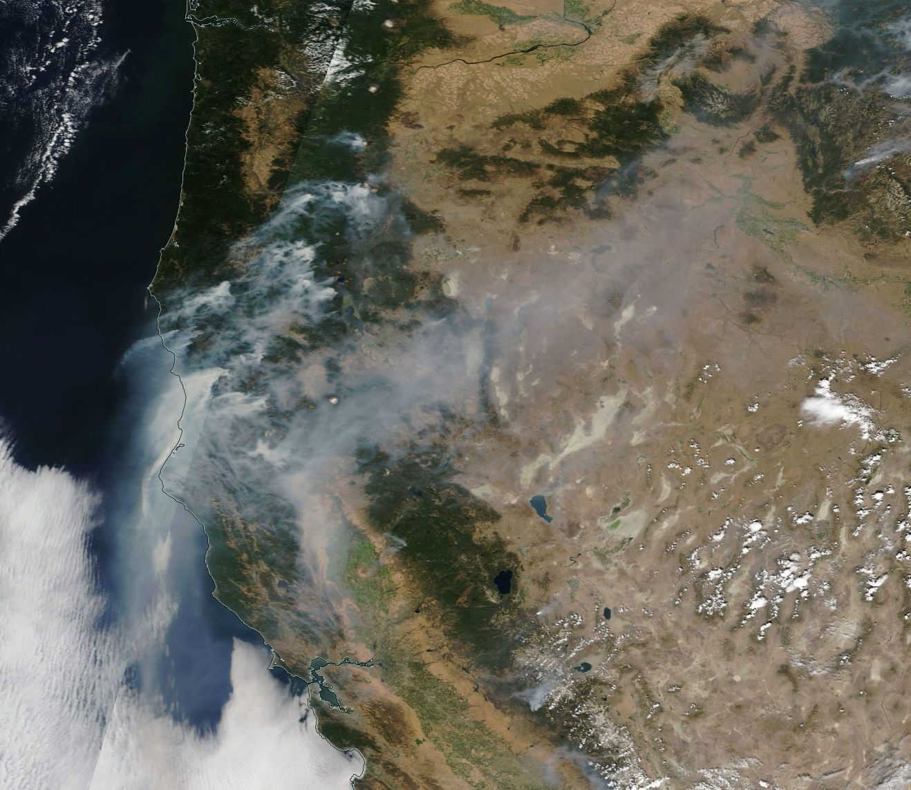 NASA satellite imagery also showed smoke coming into California from across the northwestern states – including Montana and Idaho.