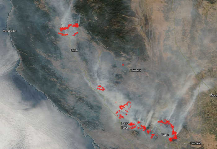 In Napa County, Cal Fire said the Tubbs fire has scorched 27,000 acres, the Atlas fire has blackened 25,000 acres, and the Partrick fire burned 1,000 acres.