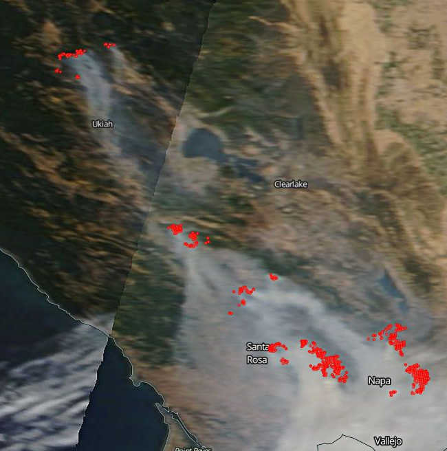 Gearhart said the smoke and haze currently visible through areas of Lake County are primarily the result of the Tubbs fire in Napa and Sonoma counties, the Atlas and Partrick fires in Napa County, the Nuns Fire and Pocket fires in Sonoma County, the Mendocino County Complex fire in Mendocino County, and localized impacts from the Sulphur fire in Lake County.