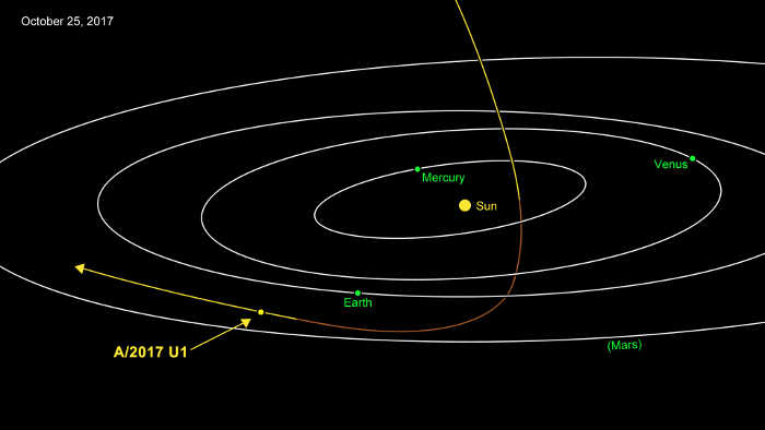 A/2017 U1 was discovered Oct. 19 by the University of Hawaii's Pan-STARRS 1 telescope on Haleakala, Hawaii, during the course of its nightly search for near-Earth objects for NASA.