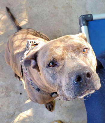 “Blue” is a male Staffordshire Bull Terrier.