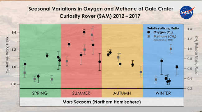 With the new oxygen findings in hand, Trainer’s team is wondering if chemistry similar to what’s driving methane’s natural seasonal variations may also drive oxygen’s. At least occasionally, the two gases appear to fluctuate in tandem.