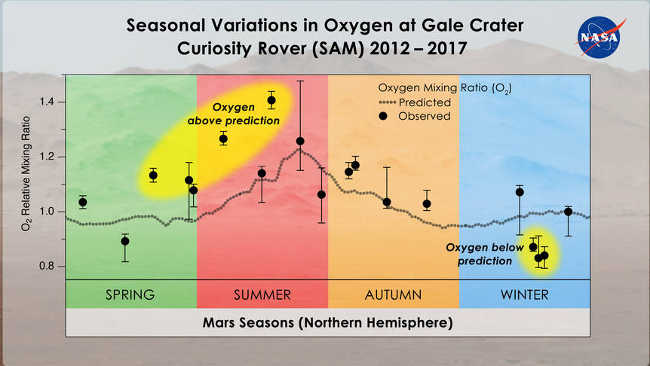 “We have not been able to come up with one process yet that produces the amount of oxygen we need, but we think it has to be something in the surface soil that changes seasonally because there aren’t enough available oxygen atoms in the atmosphere to create the behavior we see,” said Timothy McConnochie, assistant research scientist at the University of Maryland in College Park and another co-author of the paper.