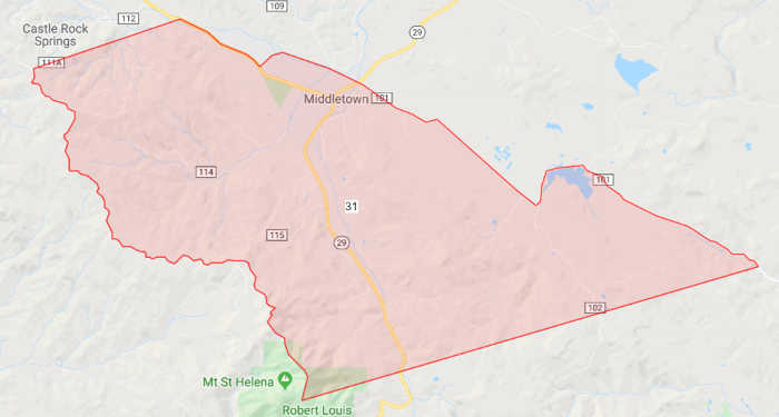 This includes all roads off Highway 175 between Middletown and McKinley Drive as well as all of Butts Canyon Road including side streets.