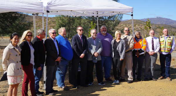 State and local officials gathered to mark the completion of the Highway 29 and Hartmann Road roundabout near Hidden Valley Lake, California, on Thursday, October 17, 2019. Photo by Elizabeth Larson/Lake County News. They included a fatal collision in 2011 that triggered temporary safety measures, including installation of a three-way stop sign until a permanent solution could be constructed.