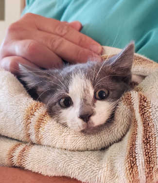 This male domestic short hair kitten is in kennel V No. 10, ID No. 13033. Photo courtesy of Lake County Animal Care and Control. Domestic short hair kitten