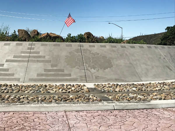 A closeup of the artistic detail on the Highway 29 and Hartmann Road near Hidden Valley Lake, California. The design was inspired by the local flora and fauna and Pomo Indian basket designs. Photo courtesy of Caltrans.