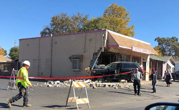 The crash occurred at 10:55 a.m. Thursday at Castle Donuts, 14370 Lakeshore Drive, according to Clearlake Police Sgt. Sgt. Rodd Joseph.