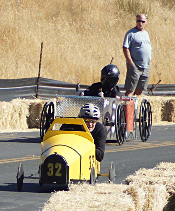 Hay bales provided by Rainbow Ag lined the race course and served as barriers beyond the finish line for those whose brakes didn’t stop them immediately. The racers controlled their cars well enough that no one crashed into the bales while coming through the course.