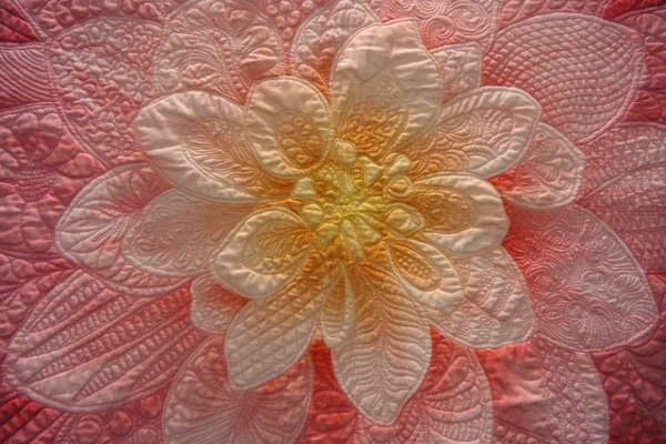 Lake County Quilt Guild member Christy Bengston of Ukiah, Calif., shows the “Big Pink” dahlia with detailed quilting on this whole cloth quilt. This quilt received Best of Category – Innovative and First Place ribbons in the 2018 quilt show in Lakeport, Calif. Photo by Suzanne Lee. McKissick will demonstrate using the Quick Curved Ruler during the day at her booth. She warmly welcomes questions about all of her techniques and tools she likes to use.