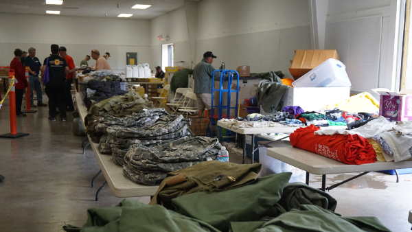 For homeless veterans, there were tables piled high with jackets, backpacks and other olive drab items that Parker said were donated by the US military, along with clothing donated from other sources.