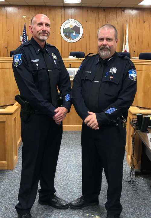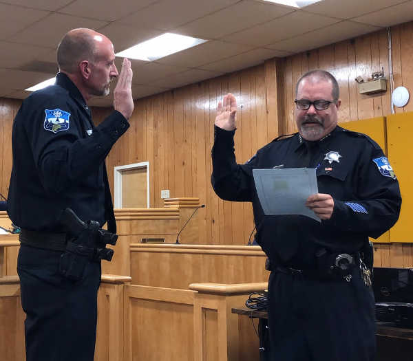 Dale Stoebe took the oath as the department’s new lieutenant from Chief Brad Rasmussen in a Thursday evening ceremony in the city council chambers at Lakeport City Hall.