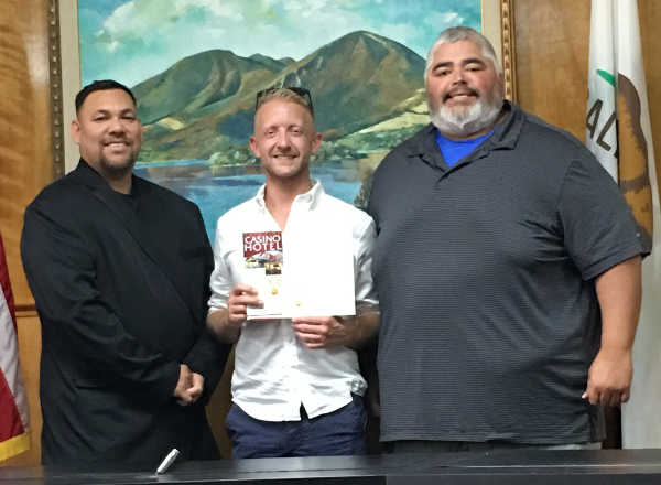 On Friday, Aug. 30, Lake County Community Risk Reduction Authority, or LCCRRA, Chairman and County Supervisor Moke Simon and Vice Chair and Supervisor Eddie Crandell met with logo design contest winner Don Sluman, awarding gift certificates for a stay at Twin Pine Casino and Resort for his winning design.