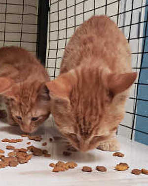 These male domestic short hair kittens have orange tabby and white coats.