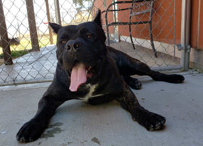 “Bear” is a male Cane Corso mastiff with a short brown coat.