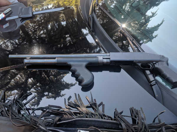 Police said that during a search of the vehicle, Officer Kelleher located a 12-gauge Mossberg shotgun on the backseat. He also found a bag of suspected methamphetamine on the front passenger floorboard of the vehicle.