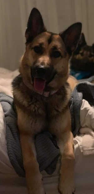 “Lexi” is a female German Shepherd with a medium-length black and tan coat.