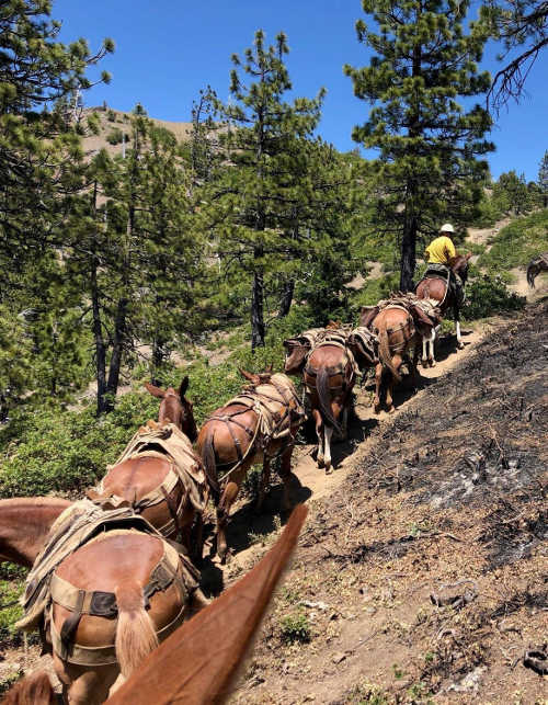 After several days of brushing trail and hauling supplies, a pack train and a California Conservation Corps crew was in place at the East fire basecamp on Buck Ridge as of Friday morning.
