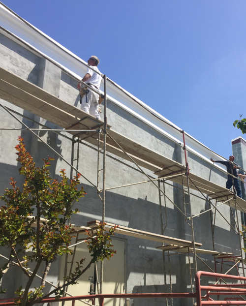 Then scaffolding went up, a top-of-the-wall moulding was applied, stucco was laid on and then the final touch, new paint.