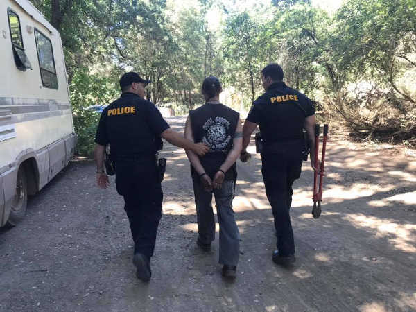 Officers arrest a man in Clearlake, Calif., during a special enforcement sweep on Thursday, June 27, 2019. Photo courtesy of the Clearlake Police Department. CLEARLAKE, Calif. – A Thursday special enforcement operation in the city of Clearlake netted numerous arrests on charges ranging from weapons possession to drugs and probation violations.