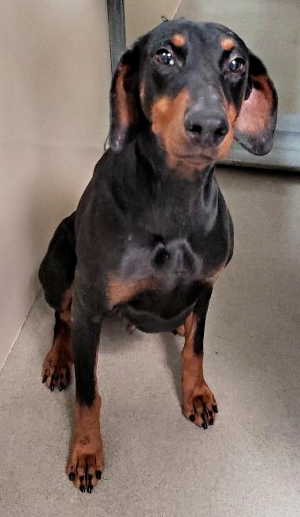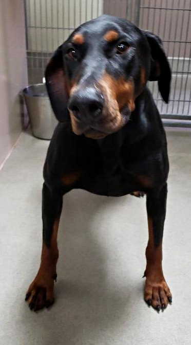 This female Doberman Pinscher is in kennel No. 22, ID No. 12385. Photo courtesy of Lake County Animal Care and Control. Female Doberman Pinscher