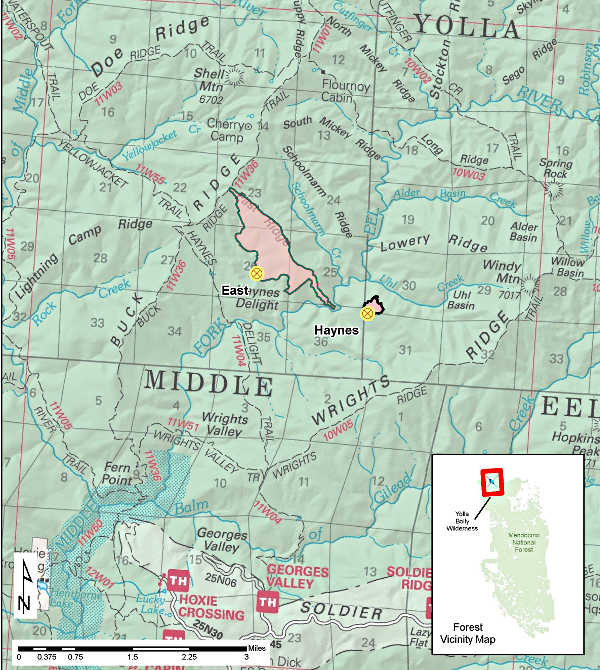 Wilderness hikers are asked to avoid travel near Buck Ridge and Wrights Ridge.