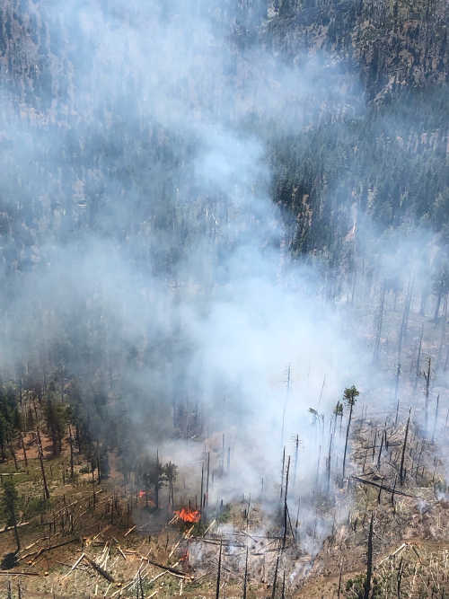 Incident Commander Trainee Terry Nickerson said after Friday’s helicopter flight, “We observed low to moderate activity on the fire which is helping reduce snags and debris in the wilderness in a natural way. We feel this is a great opportunity to manage this incident, at this time and in this location to improve forest health and reduce exposure and risk to fire personnel.”