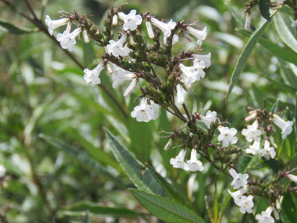 Another plant with white flowers is the Yerba santa, or Eriodictyon californicum.This bush proliferates in and amongst the serpentine soils, rocks and boulders here in Lake County. It also thrives in oak woodlands, redwood and pine forests.
