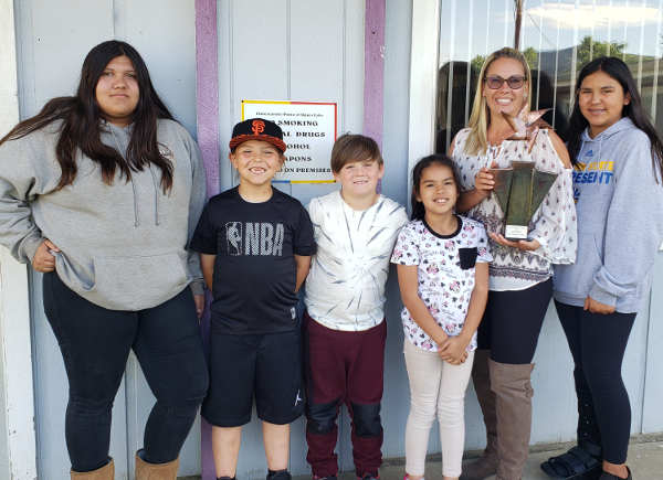 Joy Marcks, education director at Habematolel Pomo of Upper Lake, holds the inaugural Pinwheel Trophy. Marcks and tribal youth from the Habematolel Education Center accepted the trophy on behalf of the town of Upper Lake, Calif. The trophy honors Upper Lake’s display of pinwheels commemorating April 2019 as National Child Abuse Prevention Month. Pictured left to right are Alexis Miller, Michael F. Marcks, Steven Krohn, Janine Bechtol, Joy Marcks, J. and Hope Marcks II. Photo courtesy of the Lake County Office of Education. UPPER LAKE, Calif. – The town of Upper Lake was awarded the Lake County Children’s Council’s inaugural Pinwheel Challenge trophy, honoring the community’s display of pinwheels to raise awareness of child abuse prevention, during the National Child Abuse Prevention Month in April.