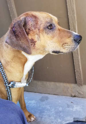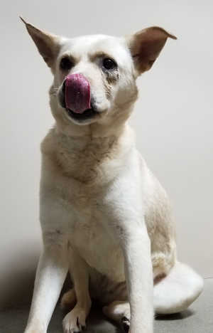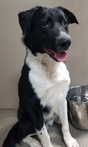 Shelter staff said he previously was an outside-only dog in a family with 5- and 12-year-old children. His owner described him as very friendly and smart.