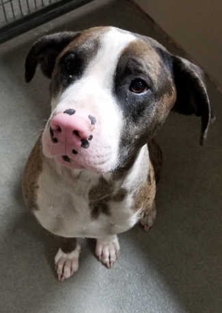 This female pit bull terrier is in kennel No. 26, ID No. 12185. Photo courtesy of Lake County Animal Care and Control. Female pit bull terrier