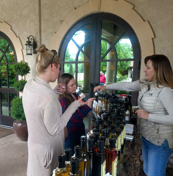 Hand-crafted California olive oils and imported balsamic vinegars were on display just outside the tasting room on a covered patio. A wide variety of flavors were available for tasting which made it a popular spot.