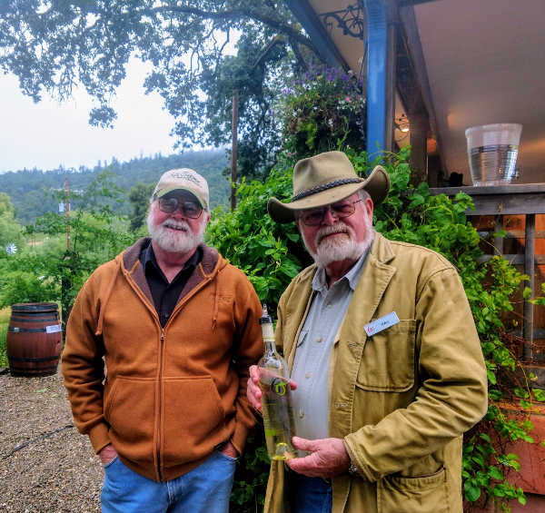 Kaj Ahlmann (right), proprietor of Six Sigma Ranch, Vineyards & Winery, stands with Walt Campbell, who poured wines during the 2019 Lake County Wine Adventure in Lake County, Calif., in May 2019. Photo by Esther Oertel. Six Sigma is a true working ranch, and on the 2-mile jaunt from the road to their historic tasting room, a former stagecoach depot, we were treated to views of pastured cattle and sheep.