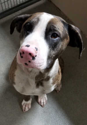This female pit bull terrier is in kennel No. 26, ID No. 12185. Photo courtesy of Lake County Animal Care and Control. Female pit bull terrier