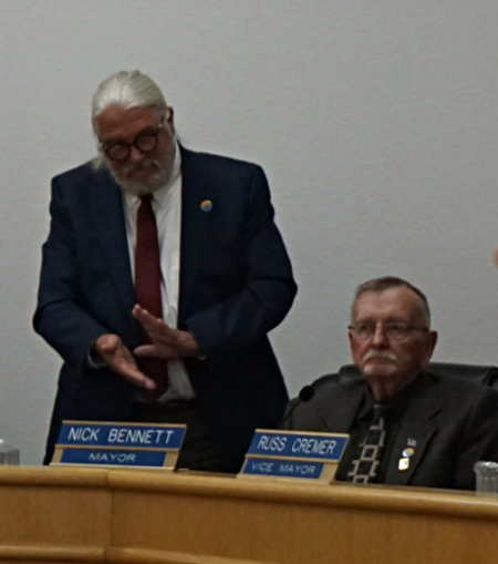 His vice mayor, Russ Cremer, joined with other council members in presenting Bennett with a plaque honoring his service.
