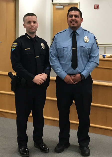 Chief Andrew White administered the oath to Capt. Tim Celli and Community Service OfficerDaniel Constancio.