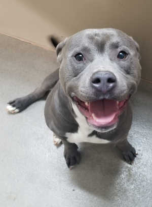 “Bobby Socks” is a female Staffordshire bull terrier-Rhodesian Ridgeback.