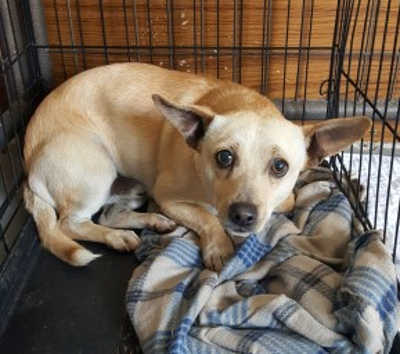 “Buddy” is a male Chihuahua with a short tan coat.
