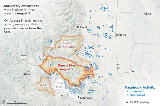 “Originally, I thought this data could be nice to track which places people decide to go, but the information didn't show any significant pattern for this fire,” said Jia, whose research was funded by NASA. “I was expecting a very simple trend, but evacuations are more complicated to understand.”