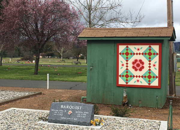 It has been installed on the pump house near the headstone of Anne and Bill Barquist in the Kelseyville Cemetery at 3375 Bell Hill Road.