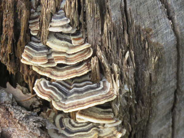 Turkey tail can be found on stumps throughout the year. Photo by Kathleen Scavone.