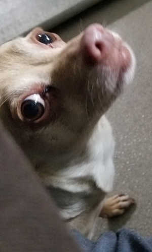 “JessJess” is a male Chihuahua with a short tan coat.