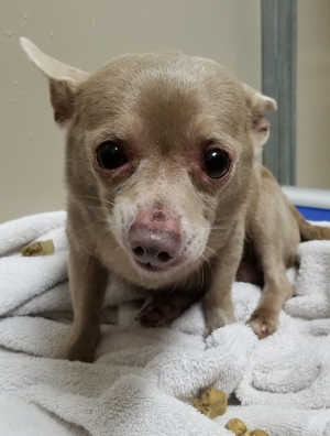 “Jaelyn” is a female Chihuahua with a short tan coat.
