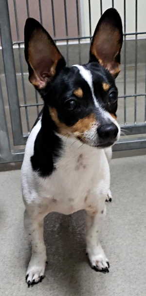 “Rudy” is a male Jack Russell terrier-Chihuahua mix.