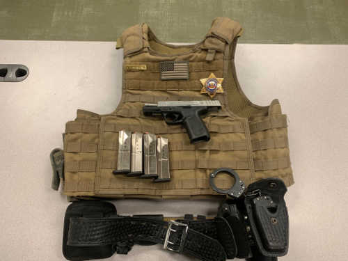 Sorenson got out of his vehicle and the deputy saw he had a semi-automatic pistol in a holster on his tactical vest. Sorenson was also wearing a duty belt with extra magazines, pepper spray, handcuffs, and flashlight, Paulich said.