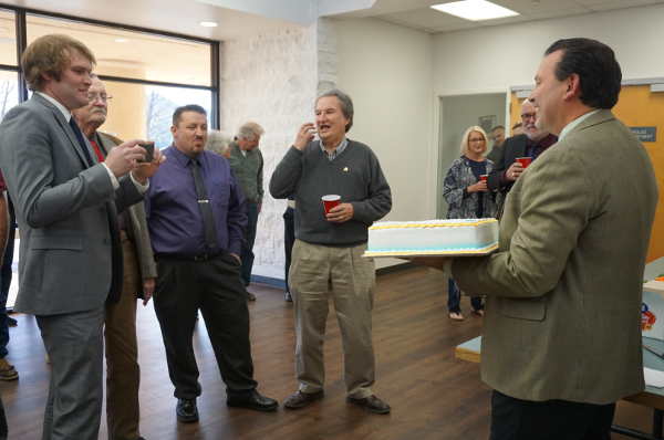 Folsom – wearing one of his signature colorful ties, a bright green one for St. Patrick’s Day – received well wishers including business and nonprofit leaders, residents, other local officials and friends.